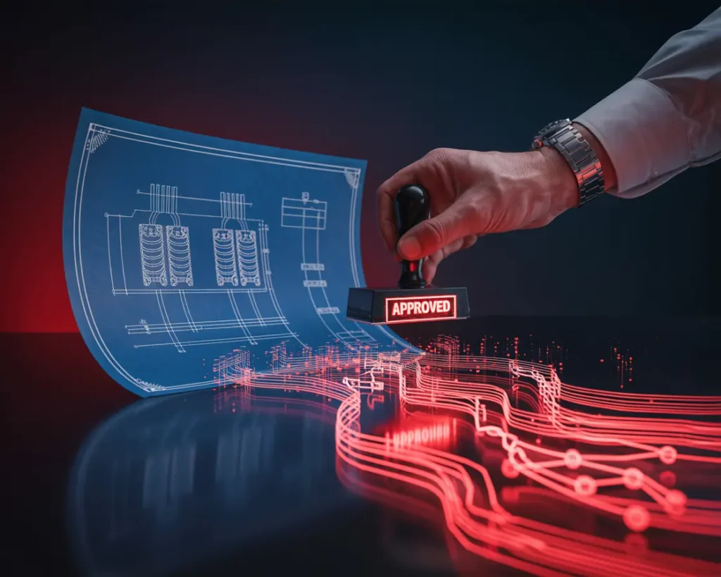 Finalized engineering designs are released as comprehensive packs, including GA drawings, wiring diagrams, and bills of materials for seamless partner execution.