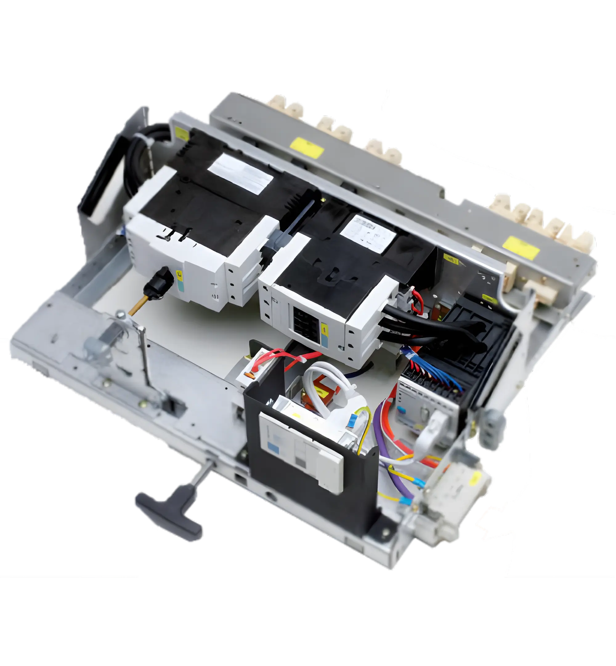 This vertical busbar system offers high current-carrying capacity (up to 2000A), excellent heat dissipation, high insulation strength, and tight contact with functional unit contacts. When the drawer unit is inserted, the safety door on the vertical busbar automatically opens, ensuring reliable primary plug-in connection. Upon withdrawal, the safety door immediately closes, fully shielding and insulating the busbar. This design effectively prevents contact with live parts even during energized maintenance, maintaining a high IP4X protection rating and ensuring absolute operator safety