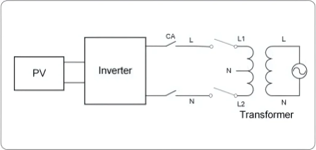 To meet the demand of users in different regions, connection to a split-phase grid system is supported for this inverter, as in the following way. Grounding detection function will not be available when the inverter is used in the split-phase grid system.