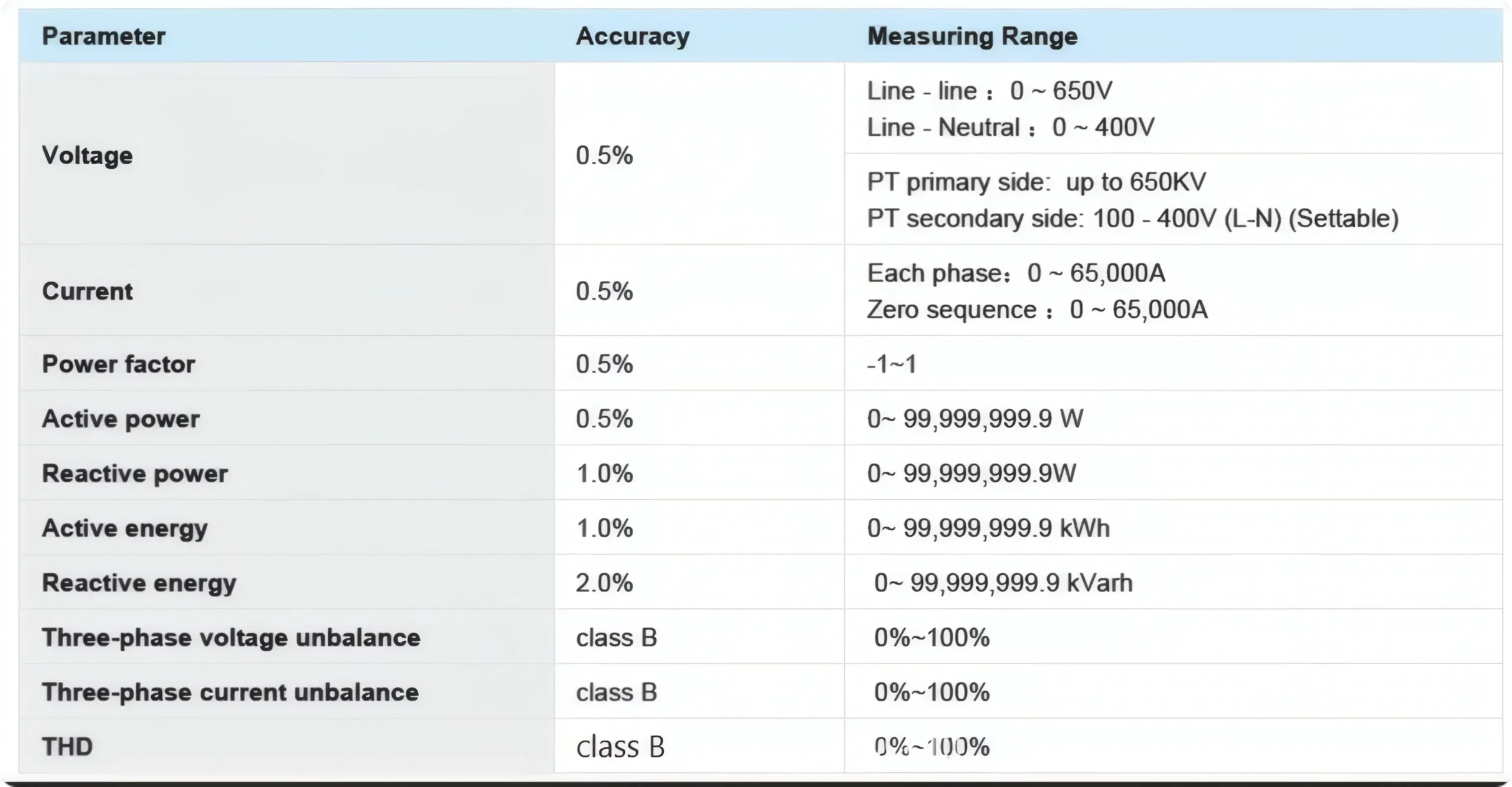 Up to 31st harmonic analysis, K factor, THD - Suit for low-voltage distribution system below AC 400V (L-N) , high voltage up to 650KV