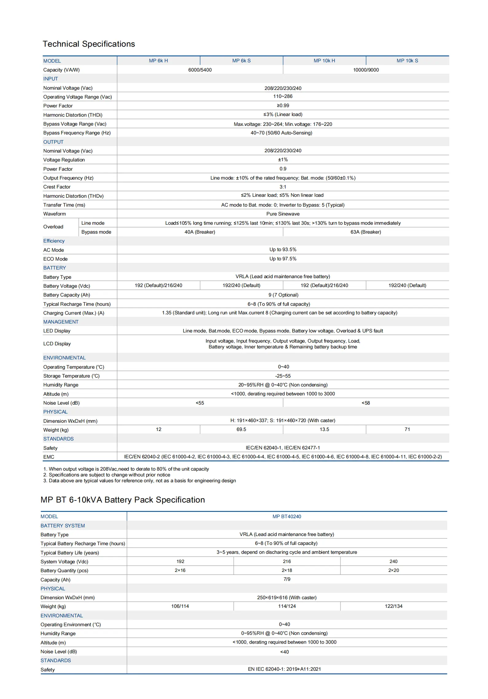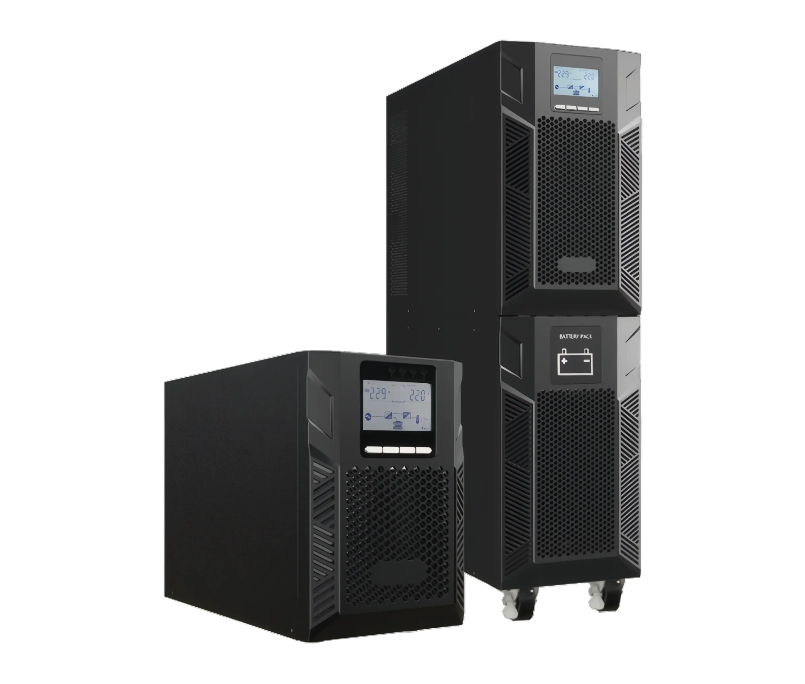 This UPS system delivers high-performance power protection through online double conversion technology with full digital control, ensuring reliable and stable output. It features a wide input voltage range of 110–286Vac and a high input power factor of 0.99 with PFC, alongside broad input frequency compatibility and generator support. Users can select the output voltage from 208/220/230/240Vac.
