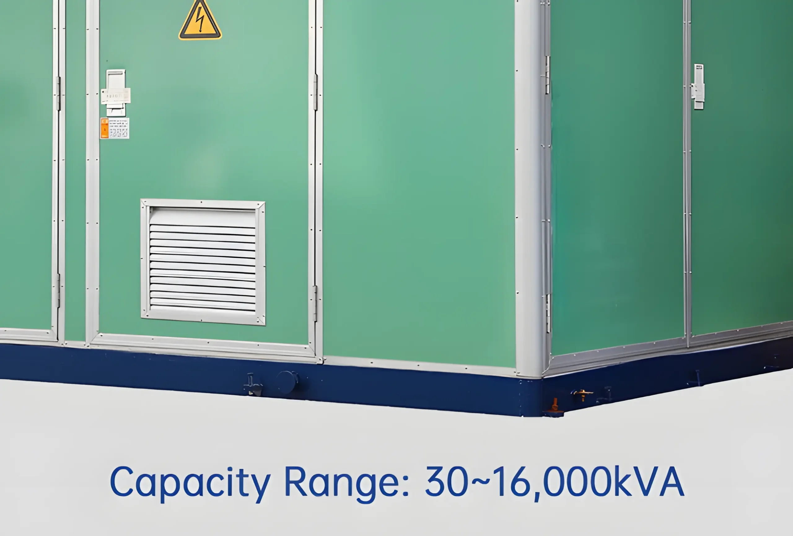 Typical voltage levels include 400V, 690V, 6kV, 10kV, 11kV, 22kV, and 33kV, with various capacity options depending on project requirements.