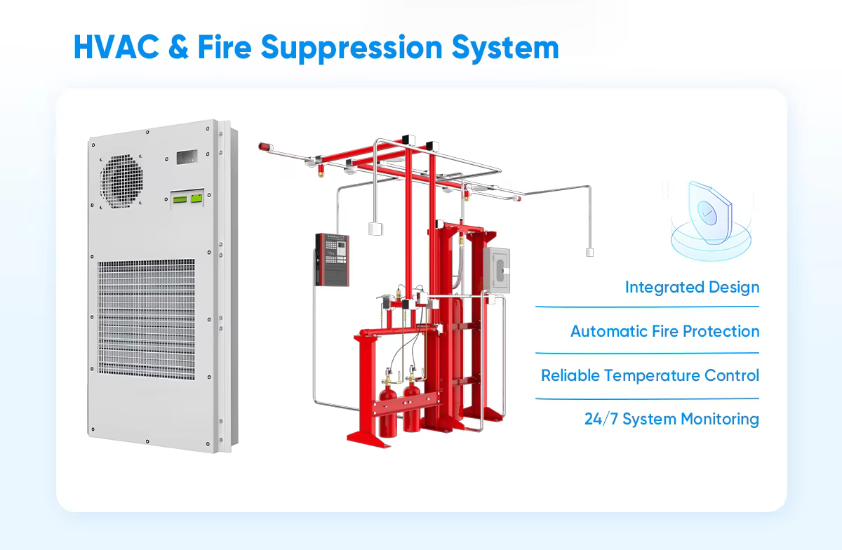 When abnormal temperature or smoke is detected, the extinguishing gas is automatically released through pipelines and nozzles for rapid fire control and system protection.